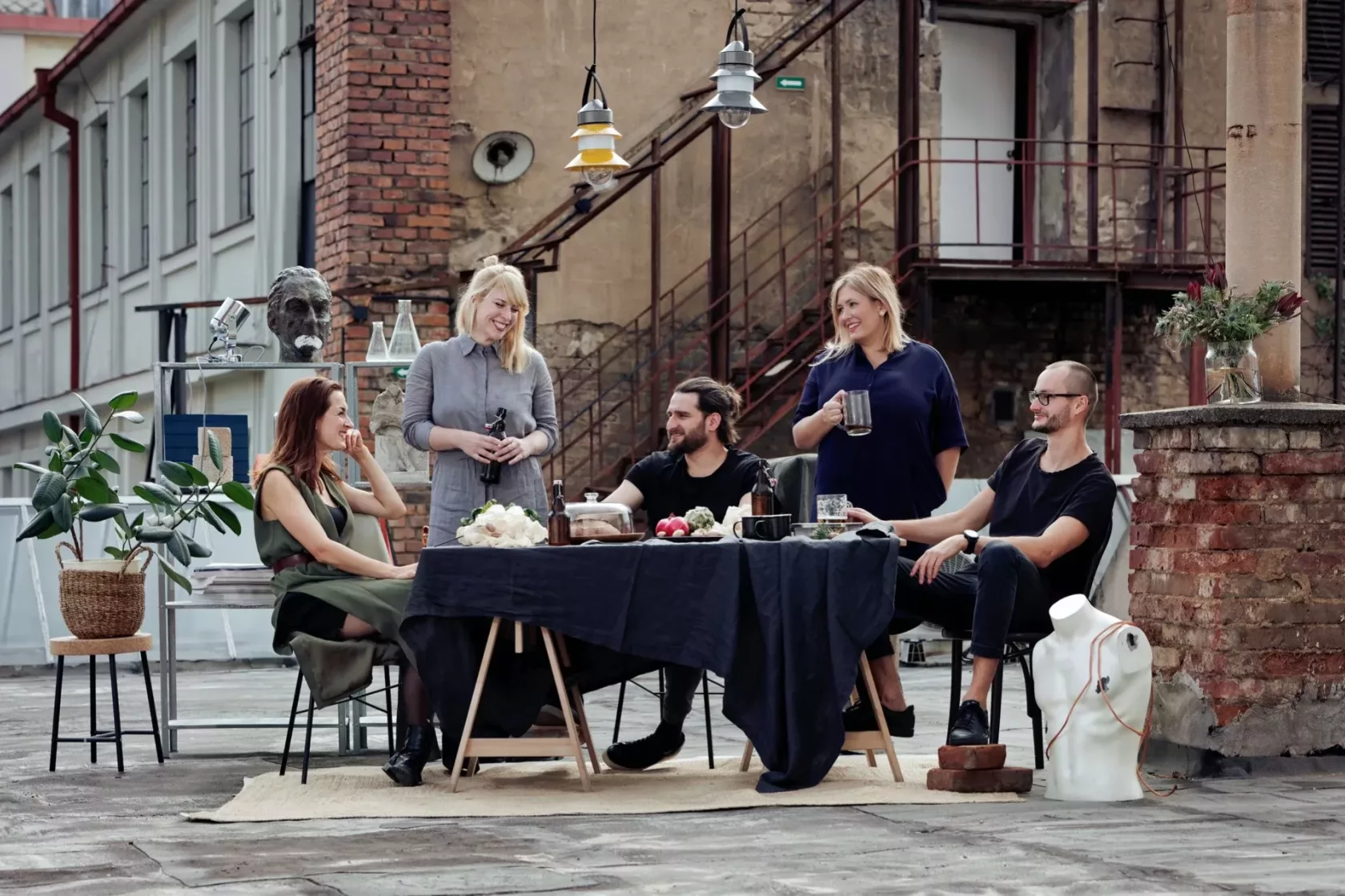 Ve svém portfoliu mají však i řadu návrhů interiérů, a to nejen bytových, ale i komerčních, malých i velkých, luxusních i skromných. „Rádi zkombinujeme zdánlivě nekombinovatelné, recyklujeme nepoužitelné, zdobíme nevzhledné.” Dalším neopomenutelným projektem z rukou studia je tak Dům s růžovým ostrůvkem. Ti architekti zde byli přizváni k realizaci v pražských Malešicích, kde dostali za úkol navrhnout vznikající novostavbě interiér. Včasné přizvání ke spolupráci na projektu umožnilo provázanější dispoziční řešení navržené do nejmenšího detailu. Zadání bylo jasné – navrhnout interiér pro rodinu se třemi dětmi a pejsky, kde by se cítili jako doma, který by v sobě kombinoval vše potřebné pro praktické fungování, ale zároveň by byl i místem hravosti. V hlavní roli je zde pak již zmiňovaný kuchyňský ostrůvek. Jedná se o betonovou skořepinu s růžovým pigmentem, která je vynášena ocelovou konstrukcí. Zvolená růžová působí v interiéru s lehkostí, nekřičí, ale zároveň mu dodává osobitost a díky zaobleným rohům se pak nemusíte bát ani o pobíhající ratolest. Ostrůvek je navíc zjemněním k přiznanému betonovému stropu, který se architekti rozhodli zachovat a který dodává interiéru industriálnější nádech. Něžnost projektu je docílená i kombinací zvolených materiálů – světlé dřevo, bílá výmalba a světlé obklady –, vzniká tak harmonický prostor, který má všechny předpoklady pro přirozené stárnutí. Menší mobiliář a doplňky v pastelových barvách tento pocit podtrhují a zároveň nabízejí možnost majitelům interiér drobnými zásahy výraznějších kousků obměňovat. Další vrstvou jsou pak instalovaná umělecká díla od současných českých autorů, jako jsou Michaela Červená, David Krňanský či Richard Konvička. Kvality projektu reflektuje i ocenění v soutěži Interiér roku 2022, kde si projekt odnesl vítězství v kategorii Novostavba, ale i cena pro hlavního vítěze napříč kategoriemi. Porota ocenila především harmonii dialogu investora a autora. Akcentovala však také jemnost navržených tvarů, jejich zaoblení, jež podporuje harmonii prostoru a bezpečnost, vycházející vstříc i dětskému světu. Autoři zde tak potvrzují, že návrhy, kde je myšleno i na ty nejmenší, přinášejí nesporné kvality pro každého z nás.