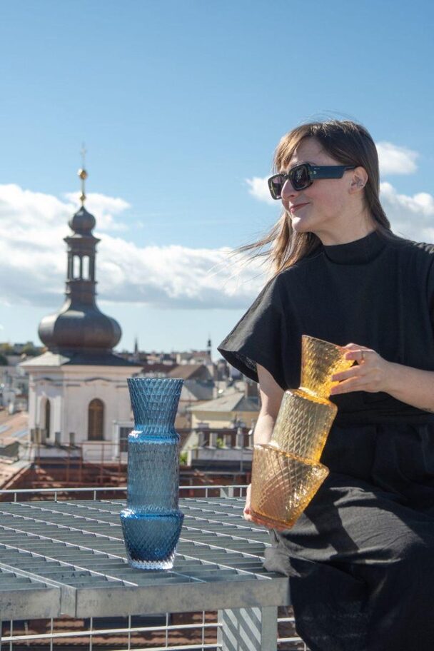 KAMILA: V poslední době mě to stále více táhne k experimentům se sklem, jeho zpracováním a materiály používanými pro jeho povrchové úpravy. Například jsem si zamilovala vysoký smalt a během léta jsem strávila spoustu času kombinováním materiálů, vytvářením vzorníků a objevováním nových způsobů práce se smaltem. Ráda také pracuji s kontrastem mezi pevným sklem a měkkou látkou nebo nití. Zároveň mě ale láká návrat ke kovu, zejména k mosazi, kterou jsem si oblíbila právě během studia. Obecně mě baví přistupovat k materiálům tak, jako bych s nimi pracovala poprvé, zkoumat jejich chování a možnosti, které mají.